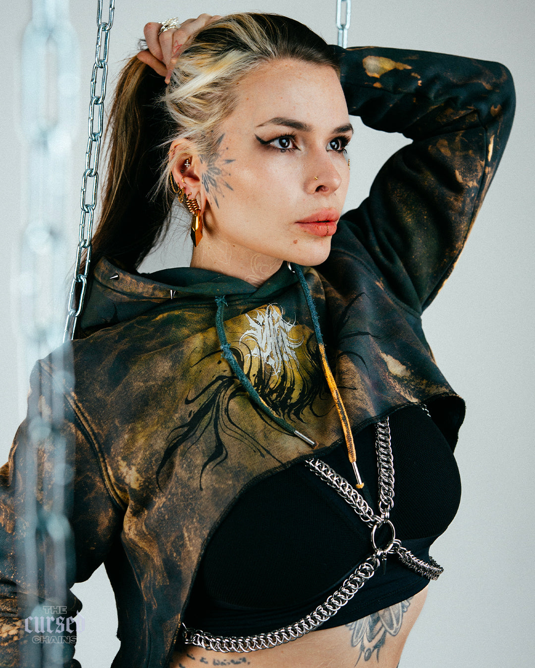 Conçu pour être porté aussi bien en journée qu’en soirée, ce harnais badass s’adapte à toutes les situations : au-dessus d’un top, à même la peau ou intégré à une tenue fétish. Chaque maillon reflète la lumière et capte les regards — une pièce forte qui te transforme en icône de pouvoir.