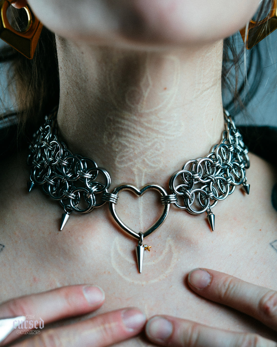 Note that the central Heart ring (Silver) is the only element of the choker that is NOT made of stainless steel.